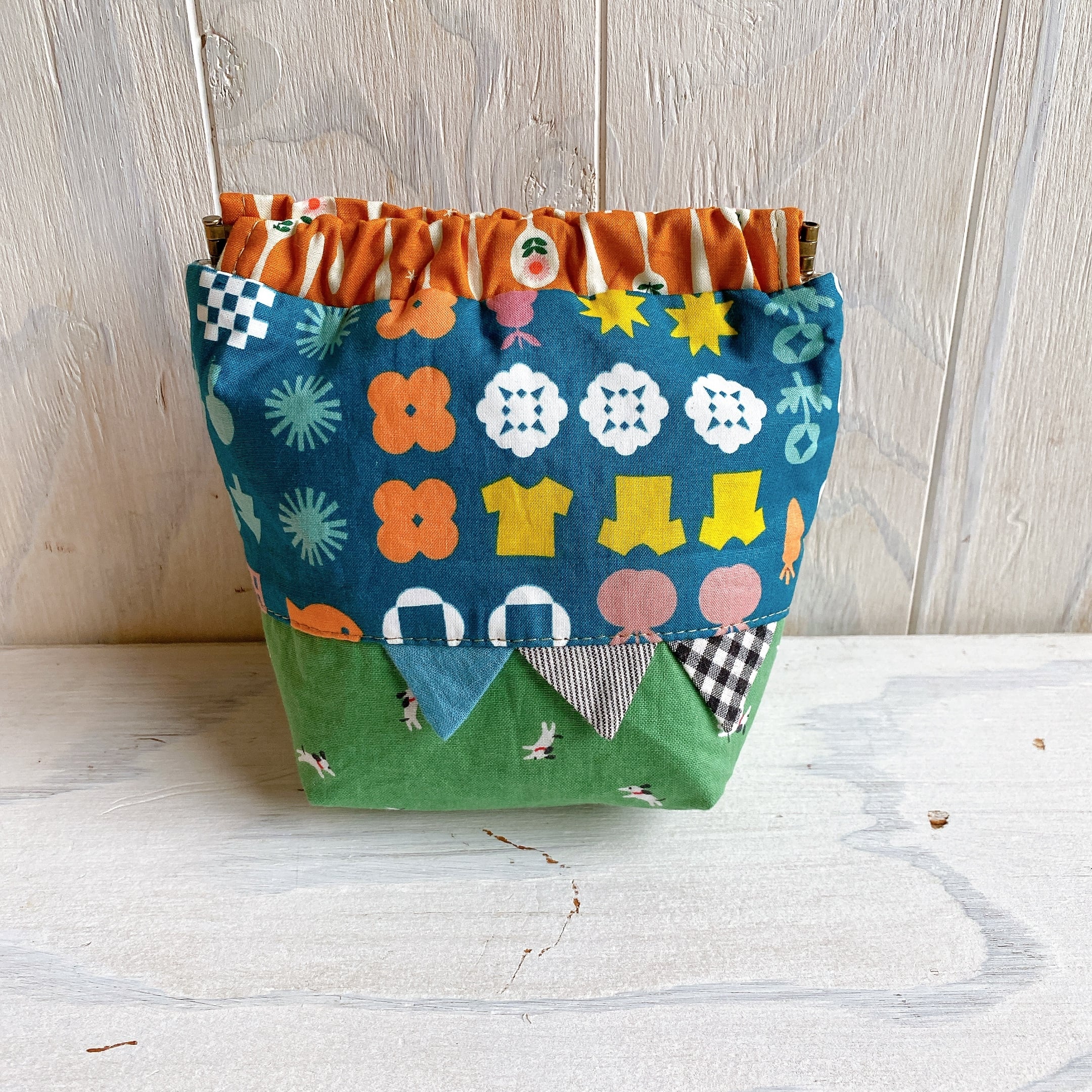 ガーランドのついたばねポーチ(ネイビーいろいろ)