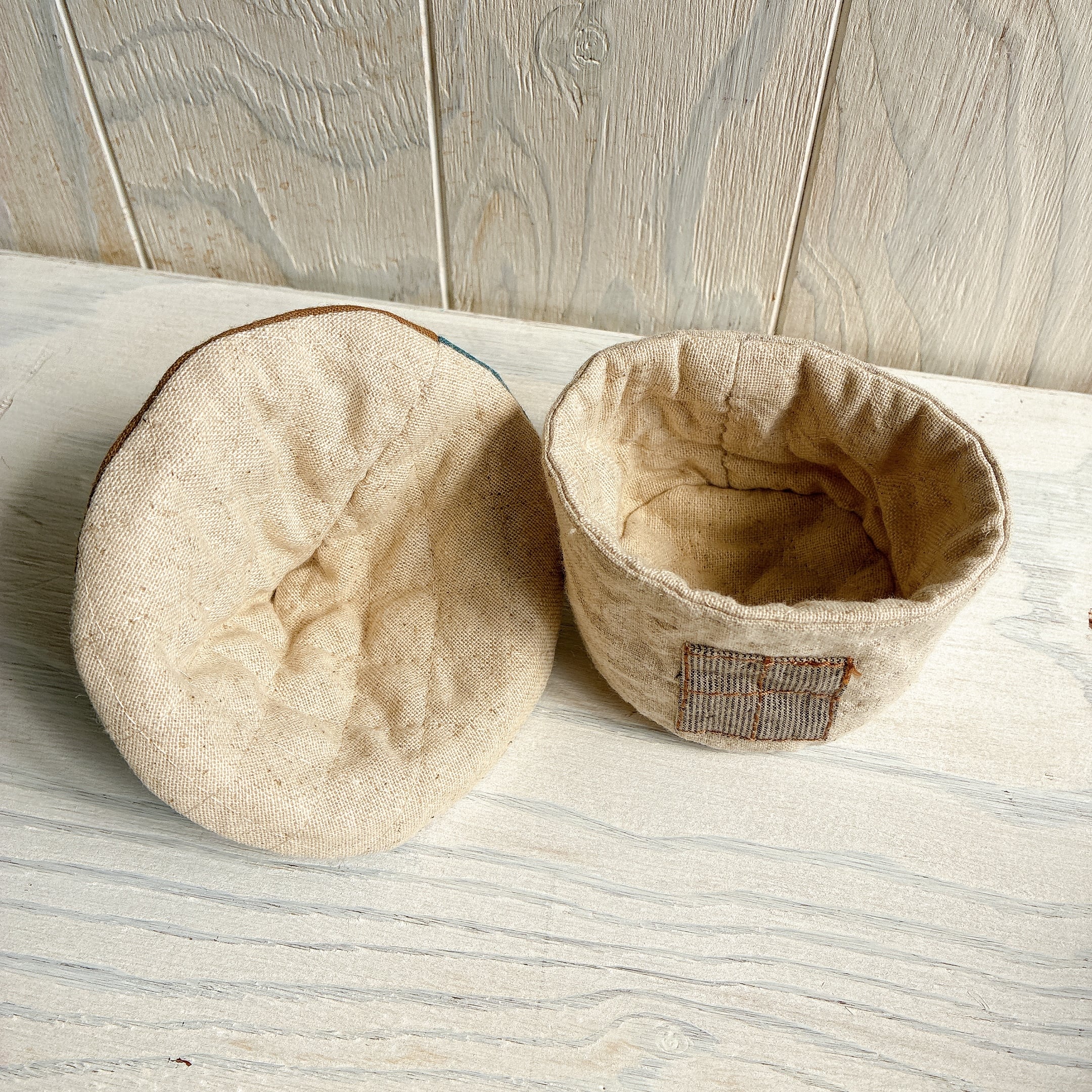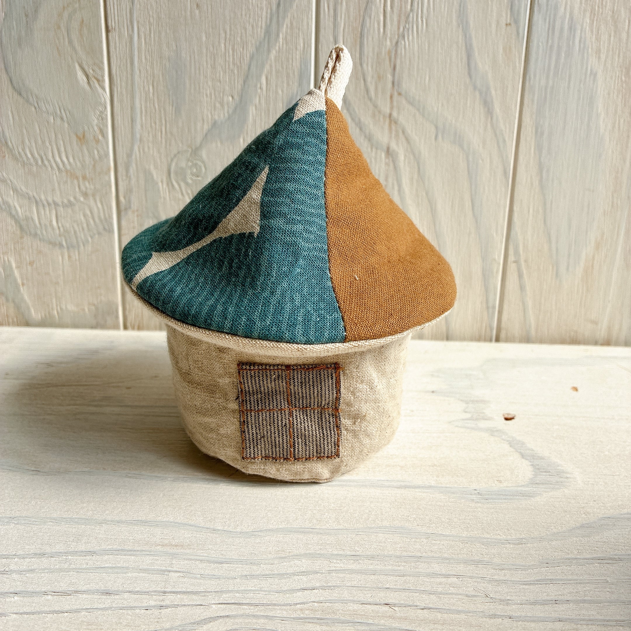 屋根が鍋つかみになった、ちいさなおうちの形の小物入れ