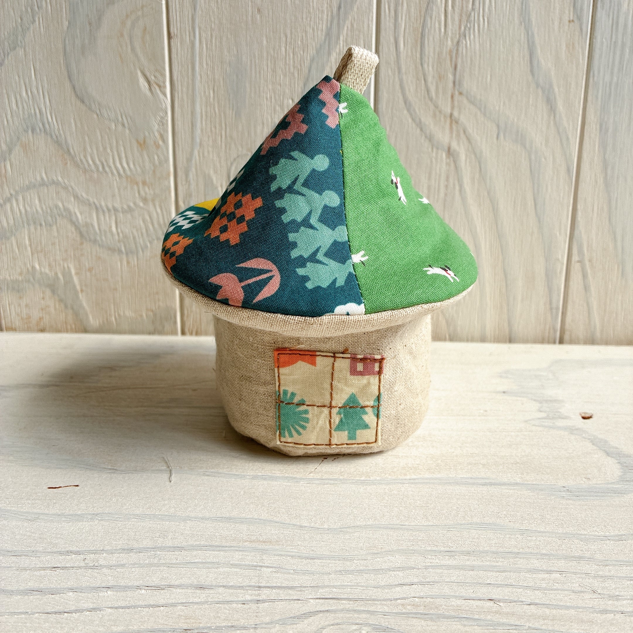 屋根が鍋つかみになった、ちいさなおうちの形の小物入れ