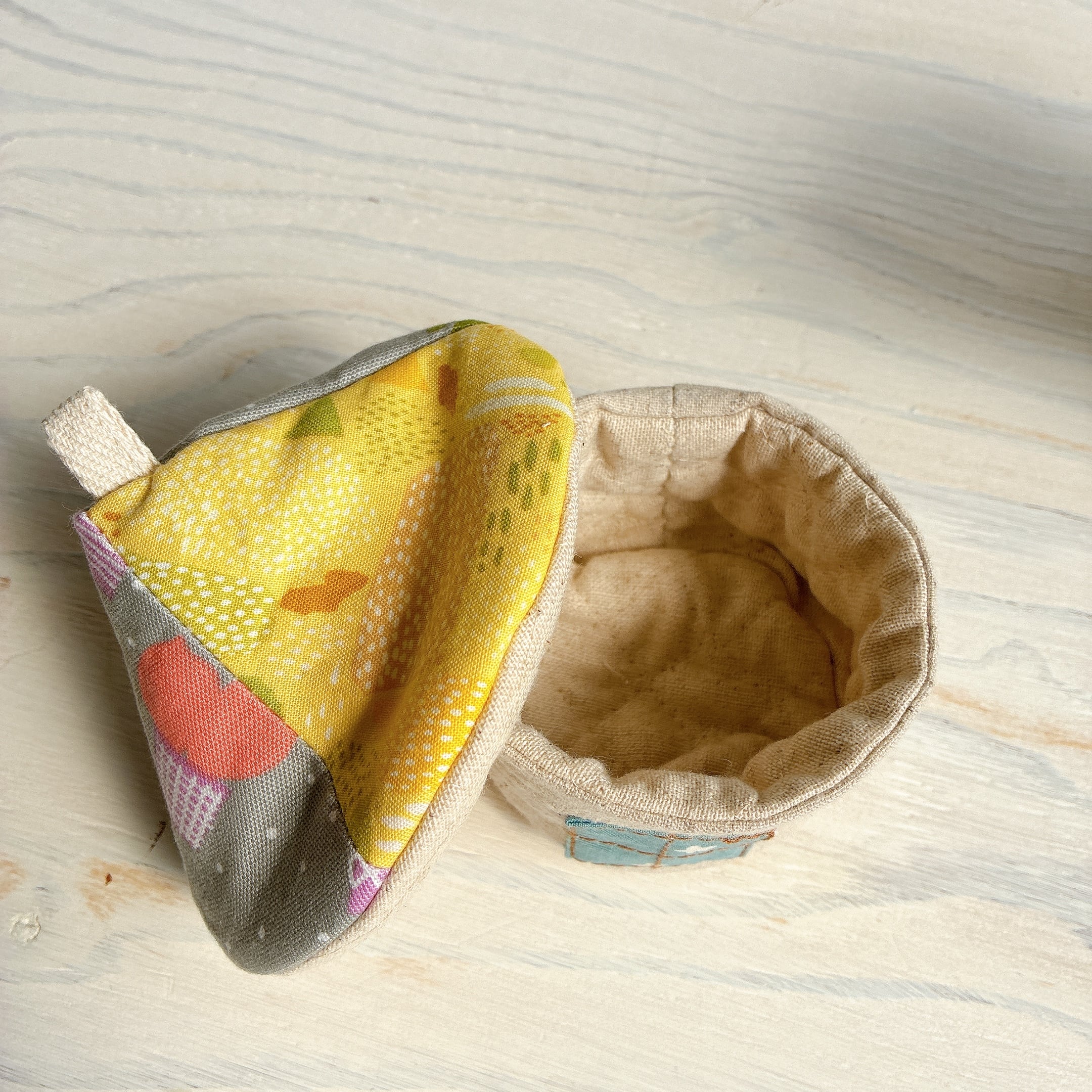 屋根が鍋つかみになった、ちいさなおうちの形の小物入れ