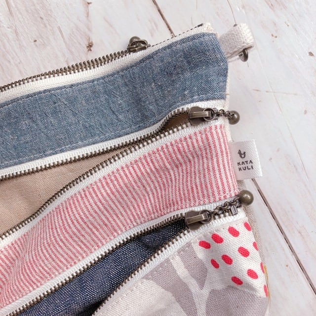 大きめな3ファスナーポーチ*ポシェットにも(リーフ)