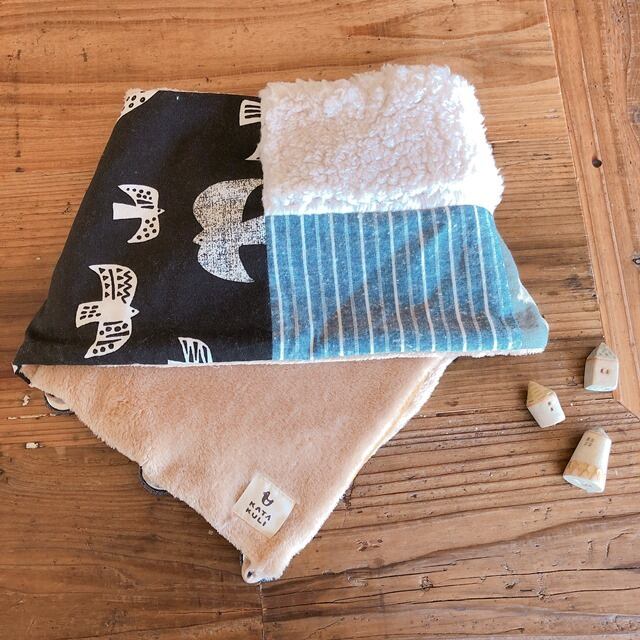 くるみボタンのあったかmixスヌード(チューリップとブラックバード)