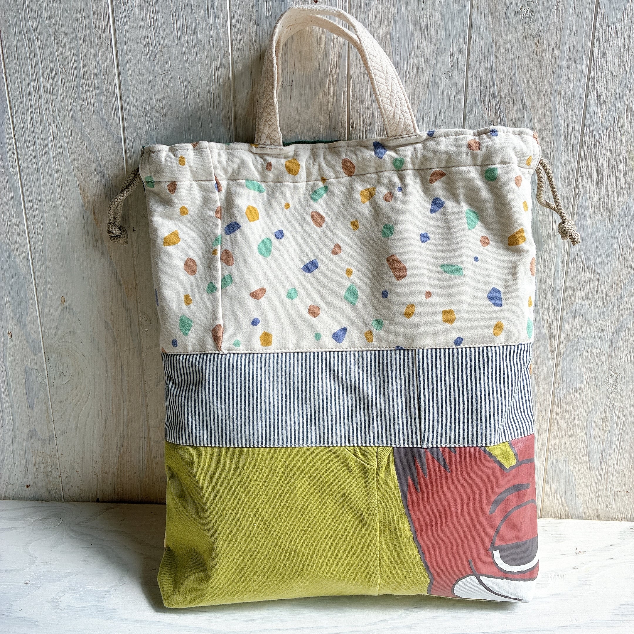 大きなプリントは裏面の大きなパッチワークに使っています。
