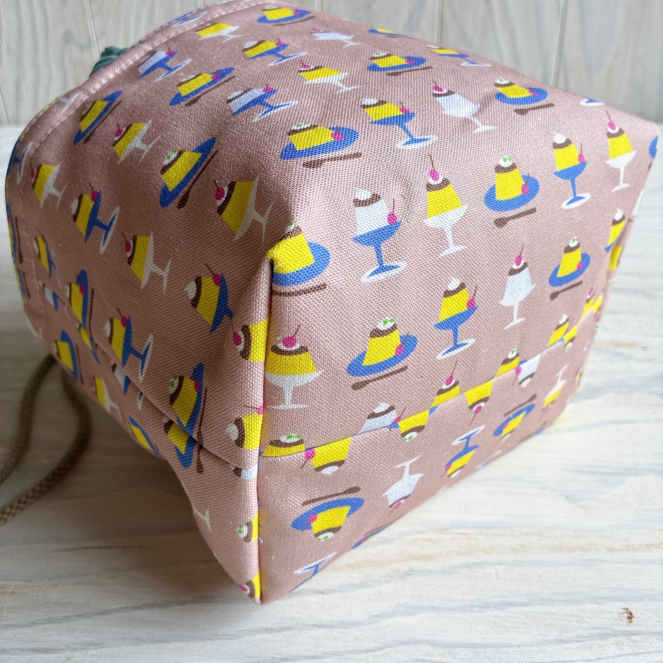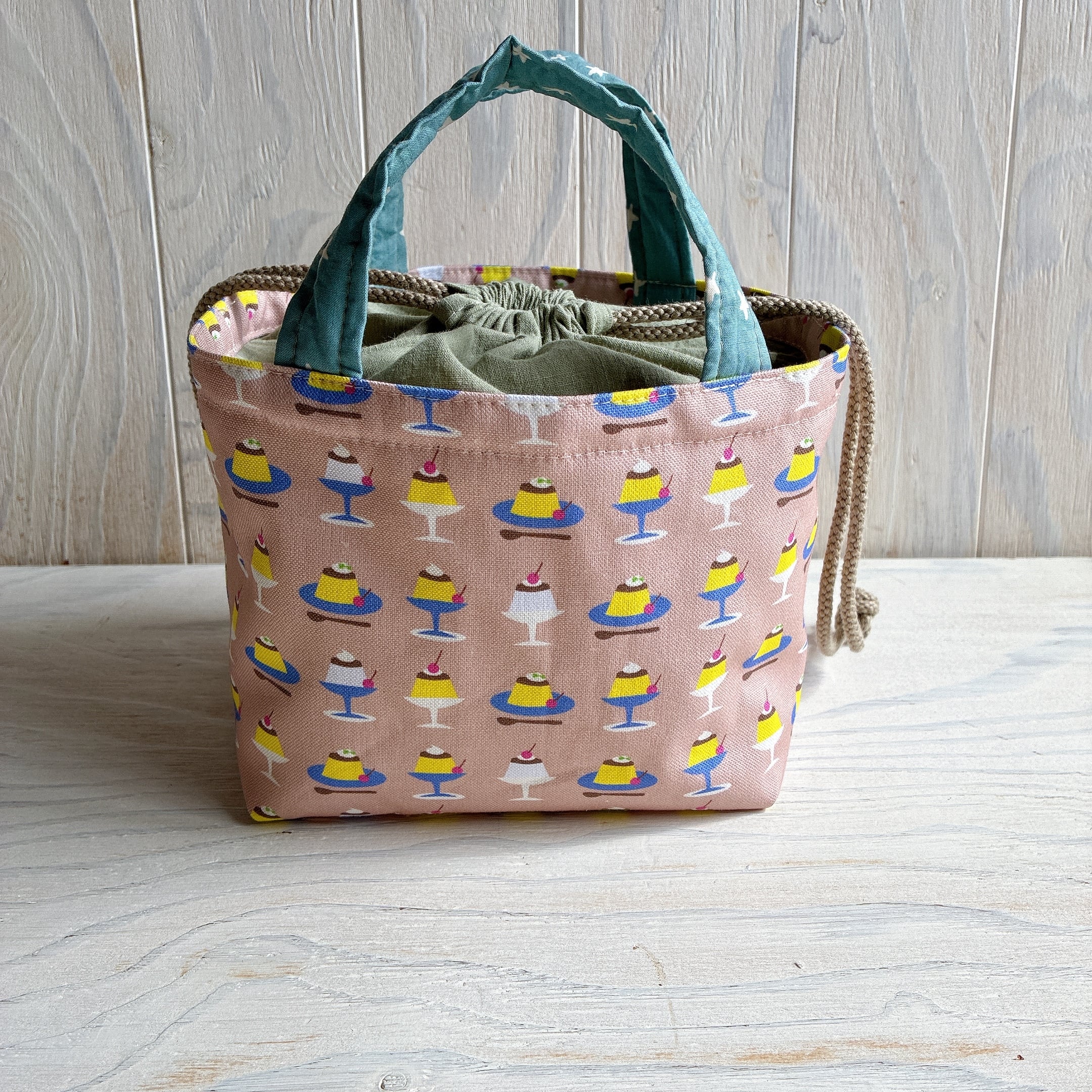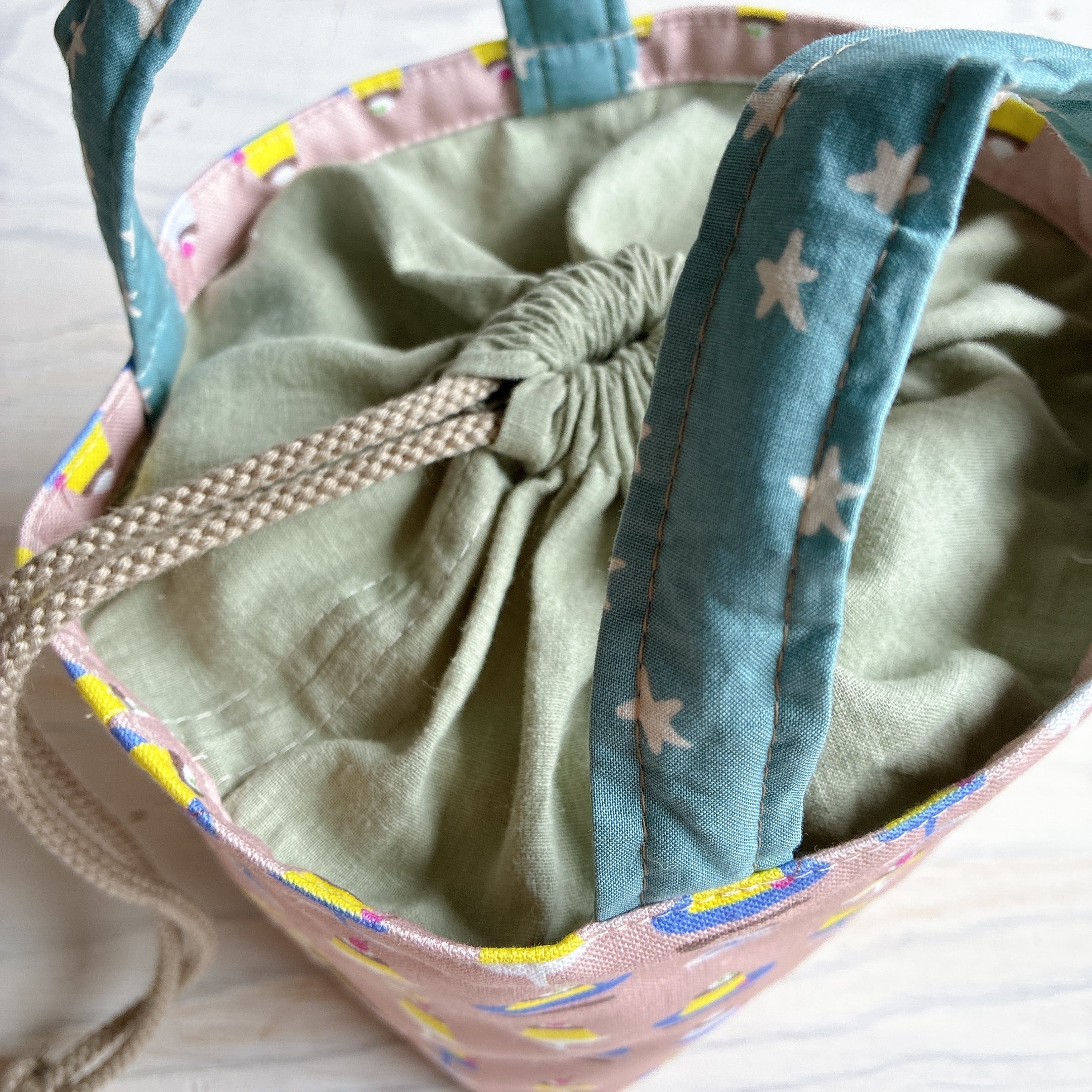 3種類の生地を組み合わせて、巾着付きのバックを作りました。