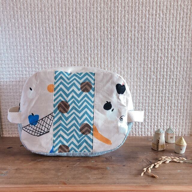 ポーチ☆おむつ、お化粧入れにも♪内ポケット付き(カゴりんご×フルーツ)