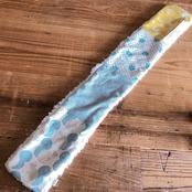 結んだりまいたりしない、テープにくぐらせる着脱楽ちんなショートマフラーです。