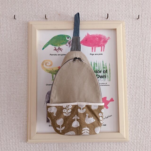 ワンショルダーのバックは、左右どちらでも使えるように両方にDカンをつけています。