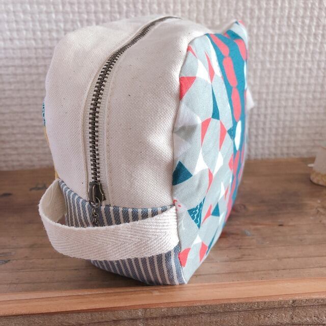 マチが広くて、使いやすい大きさのポーチ作りました。