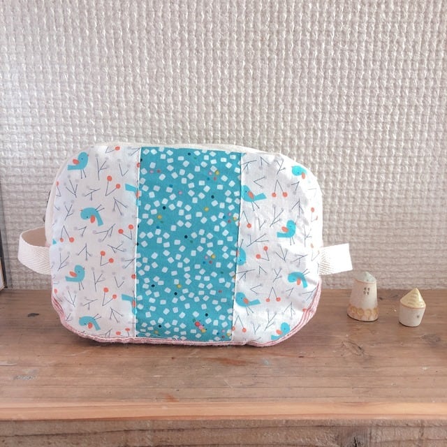 ポーチ☆おむつ、お化粧入れにも♪内ポケット付き(ことり×てんとうむし)
