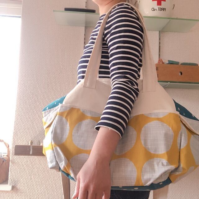 斜め掛けの肩紐は、肩が疲れないように太めに作りました。