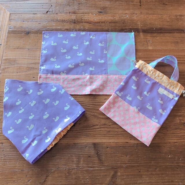 高学年キッズのエプロン4点セット(サイズ150)ラベンダーまる
