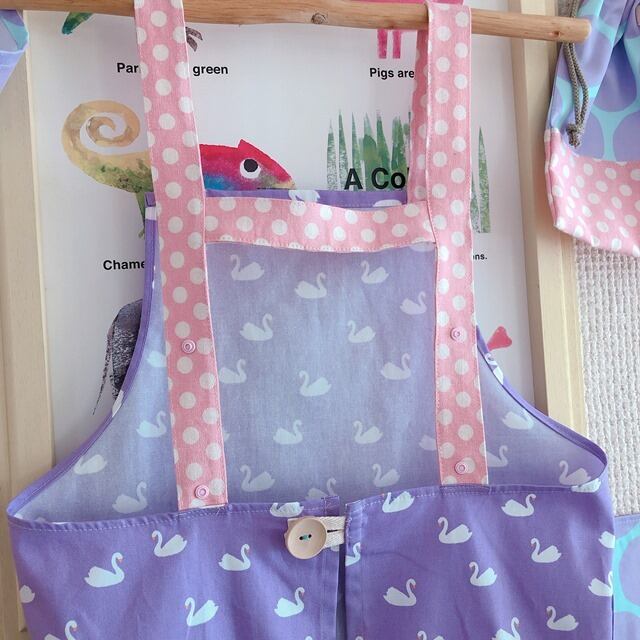 と思い、お年頃な高学年さんに気に入ってもらえそうな生地でエプロンを作りました。