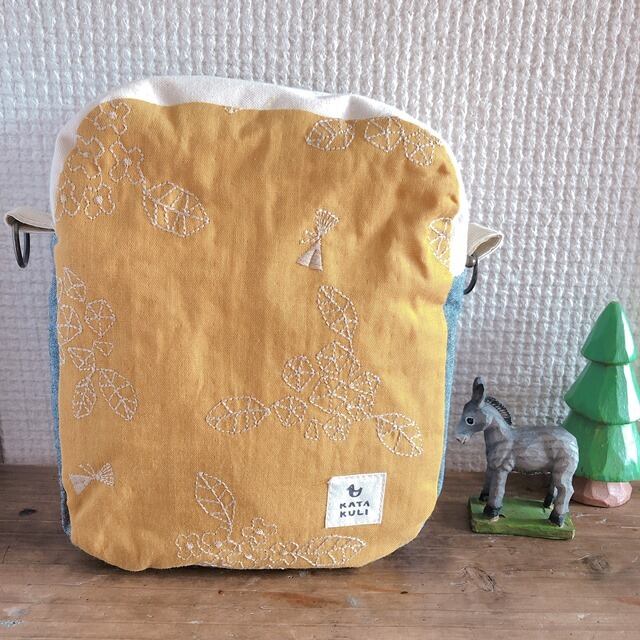 縦長な大きめポーチ*ポシェットにもなります(あじさい×刺繍ちょうちょ)