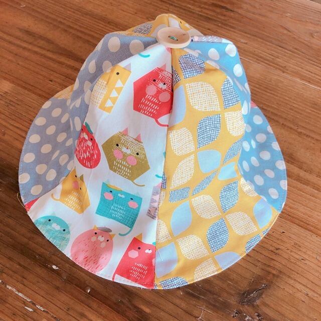 相性の良い3色の生地を組み合わせてチューリップハットにしました。
