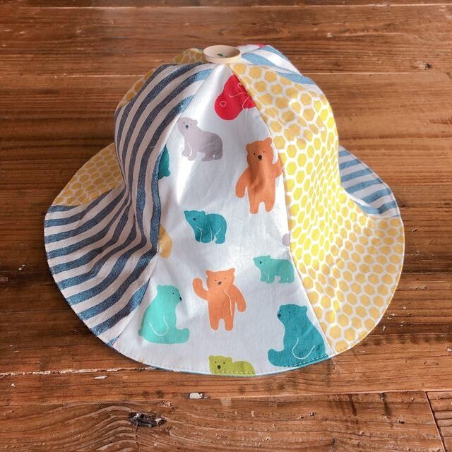 相性の良い3色の生地を組み合わせてチューリップハットにしました。