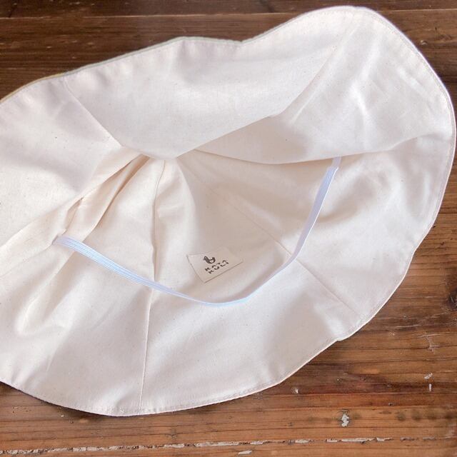 相性の良い3色の生地を組み合わせてチューリップハットにしました。