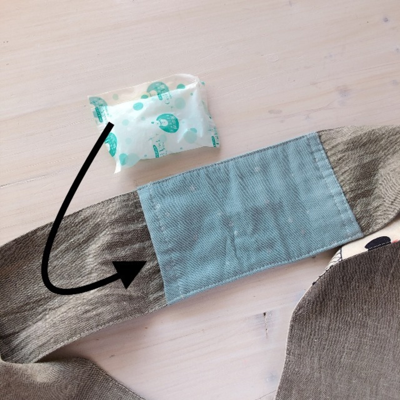 ポケットの素材はダブルガーゼを2重に使い、冷たすぎるのを防いでいます。