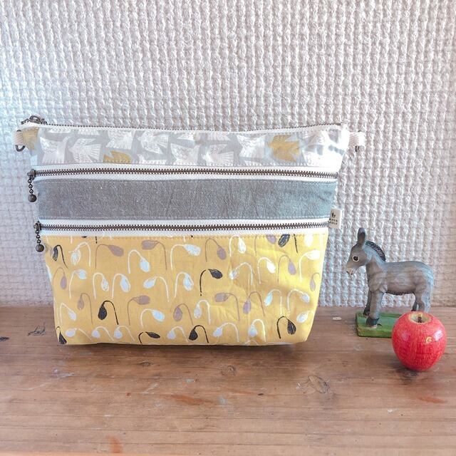 大きめな3ファスナーポーチ*ポシェットにも(もやし)