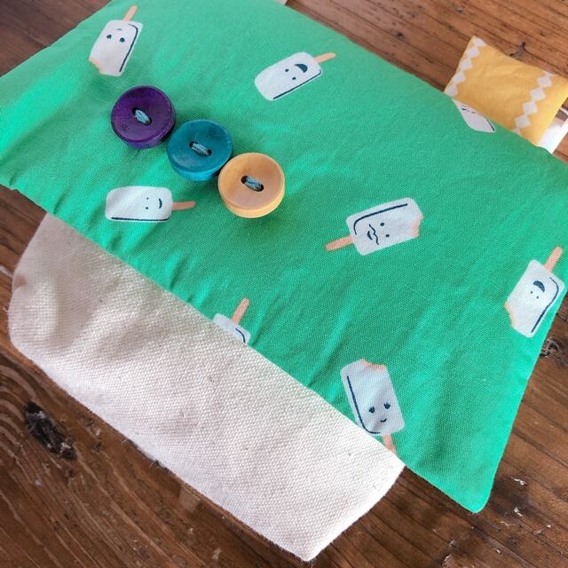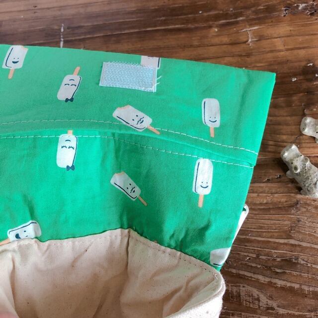 裏にはちいさいポケットを付けて絆創膏なども持ち歩けるようにしました。