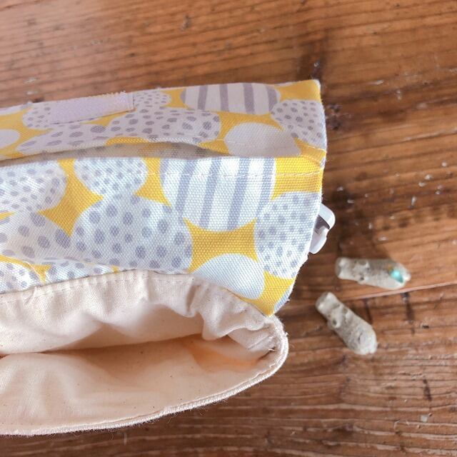 裏にはちいさいポケットを付けて絆創膏なども持ち歩けるようにしました。