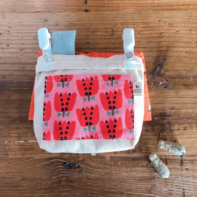 裏にはちいさいポケットを付けて絆創膏なども持ち歩けるようにしました。