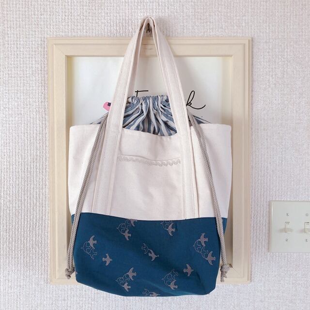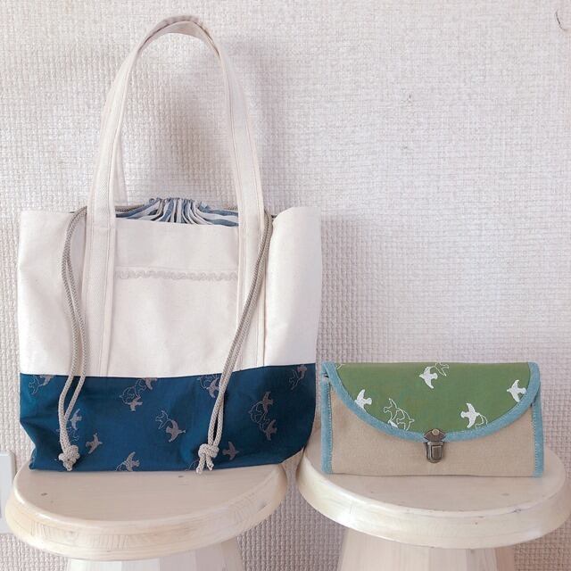 【オーダーのお品】肩紐長め巾着付きトートバックとカードたっぷり収納お財布