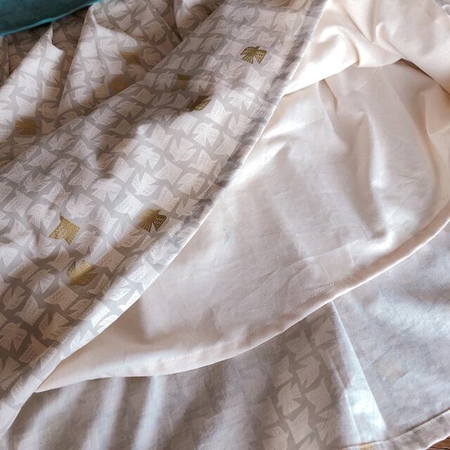 袖口の裏側にはスカート部分に使っている柄の生地を使用しています。
