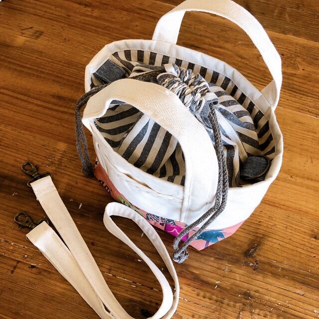 ストラップをはずすと、手持ちのミニトートになりますのでシーンに合わせて使い分けることができます。