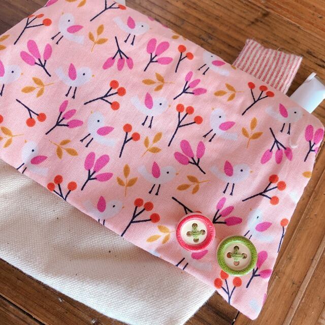 裏にはちいさいポケットを付けて絆創膏なども持ち歩けるようにしました。