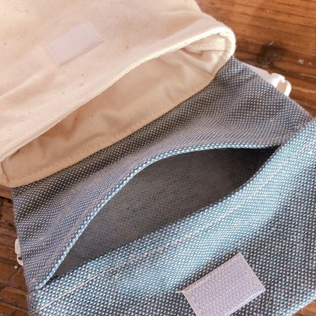 裏にはちいさいポケットを付けて絆創膏なども持ち歩けるようにしました。