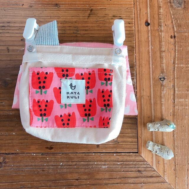 裏にはちいさいポケットを付けて絆創膏なども持ち歩けるようにしました。