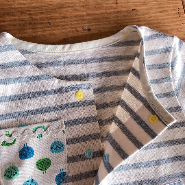 スナップボタンは全色違う色を使っていますので、お着換えの練習にも♪