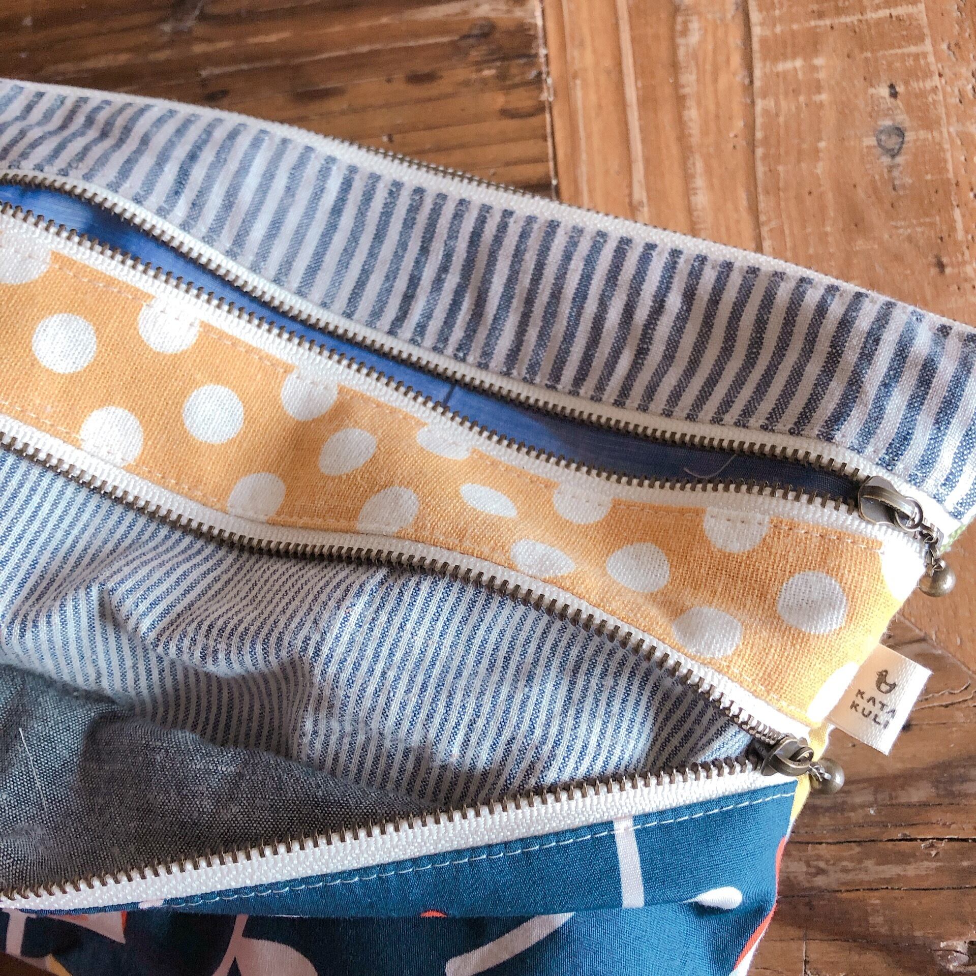 相性の良い生地を組み合わせてポシェットにもなるポーチを作りました。