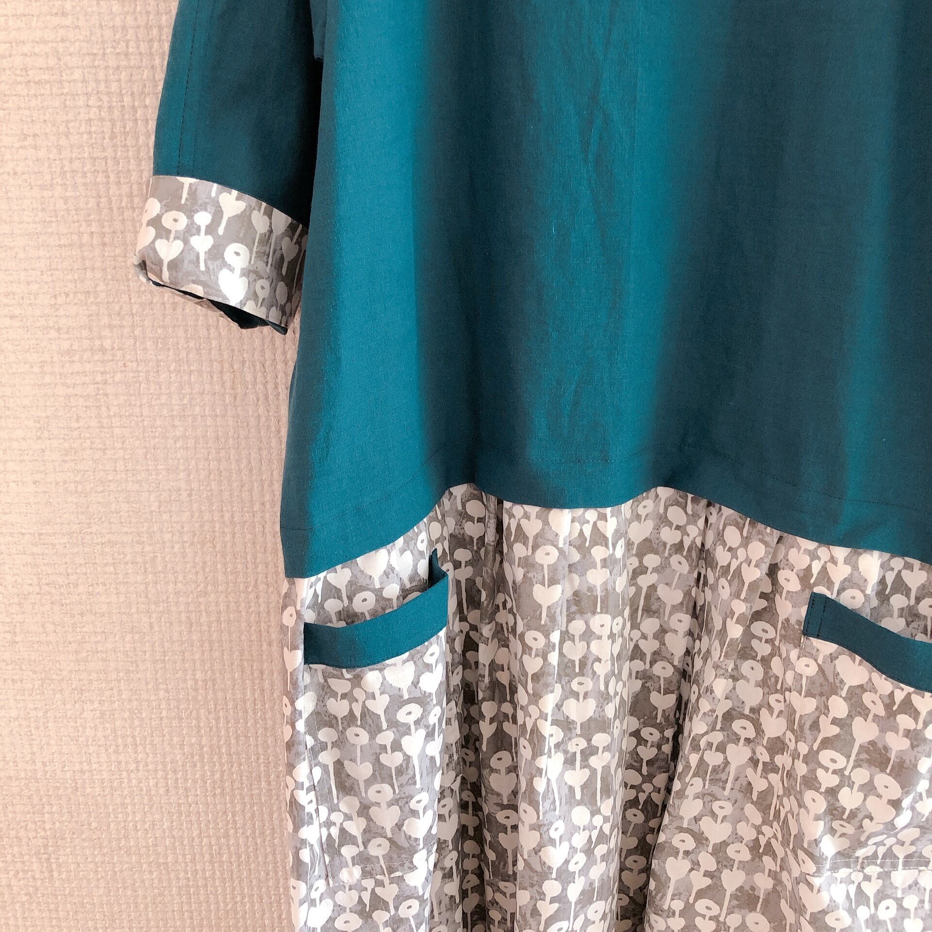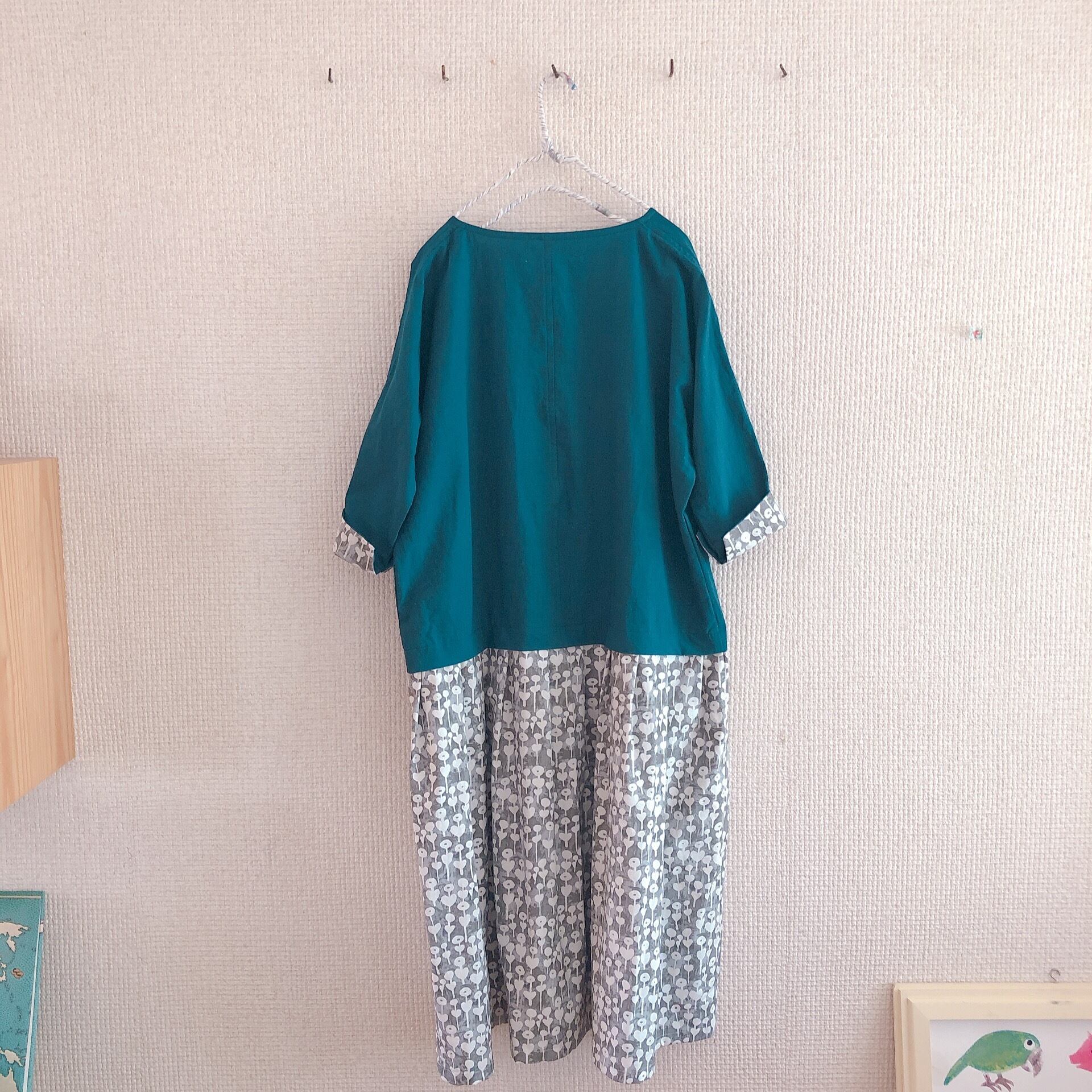 【SALE!!】ドルマンスリーブのワンピース*ダークブルーグリーン×フラワー