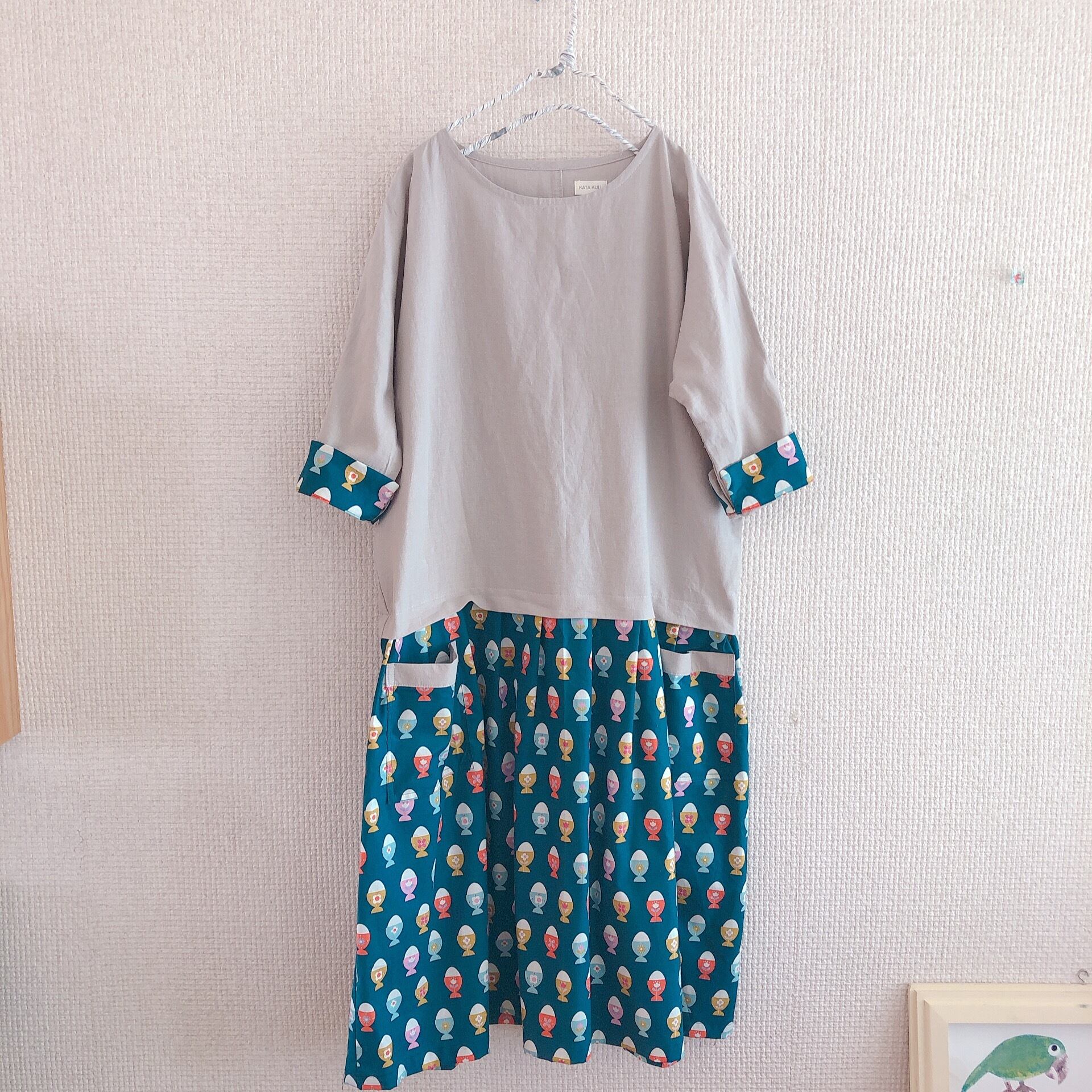 素材は、トップス部分はハーフリネン、スカート部分はコットンスケア生地です。