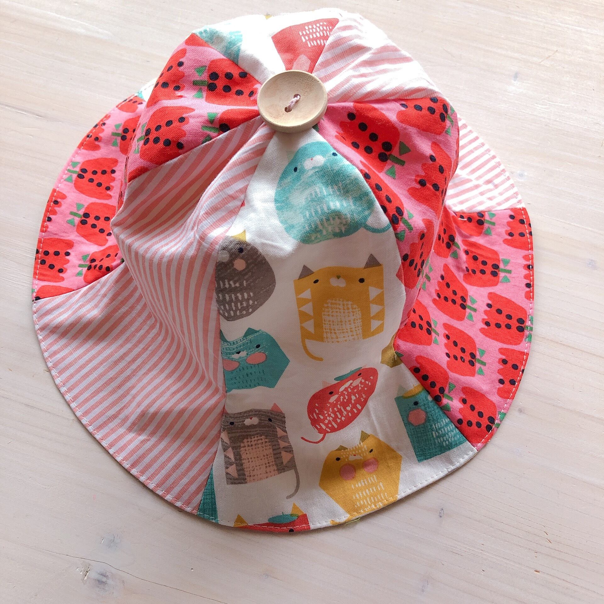 相性の良い3色の生地を組み合わせてチューリップハットにしました。