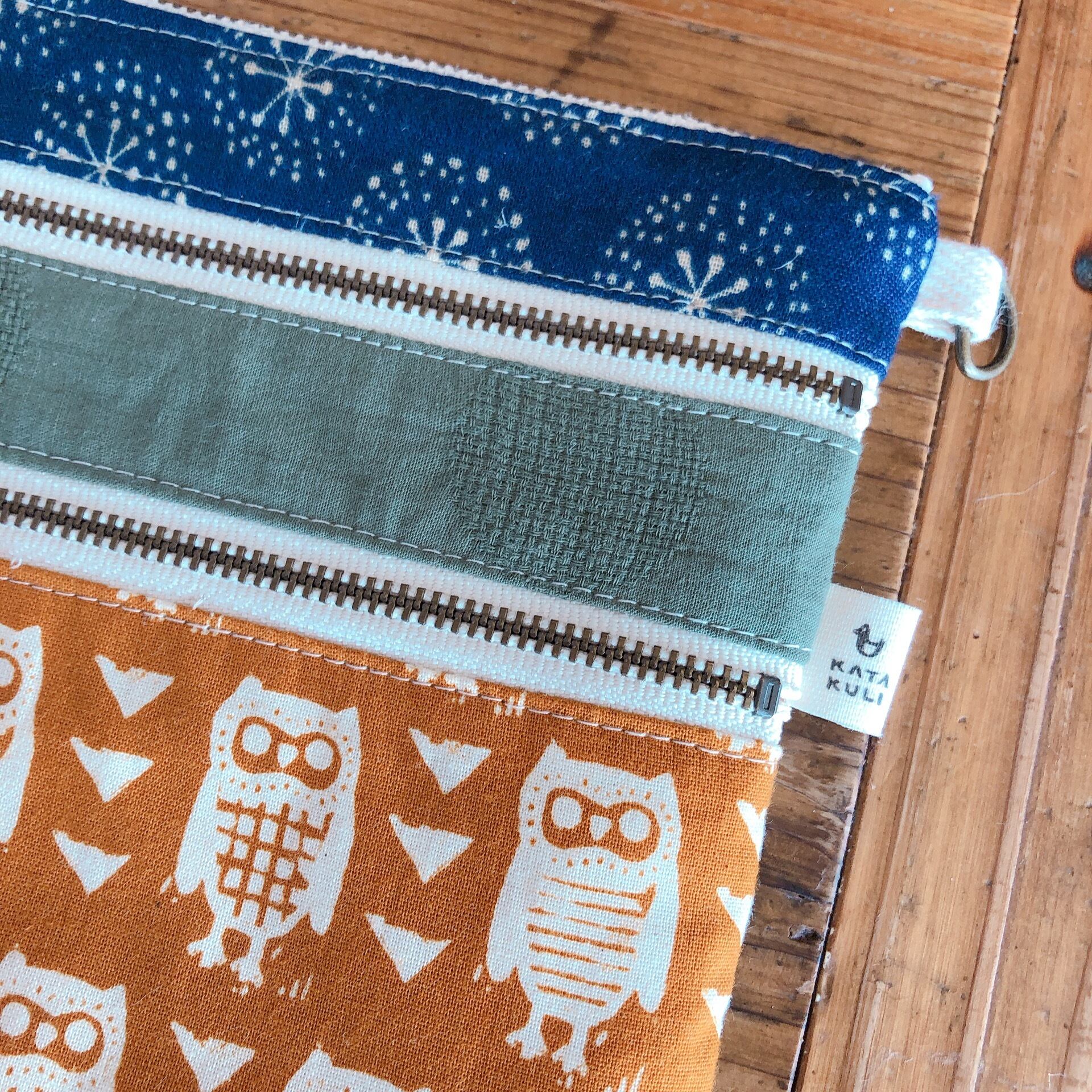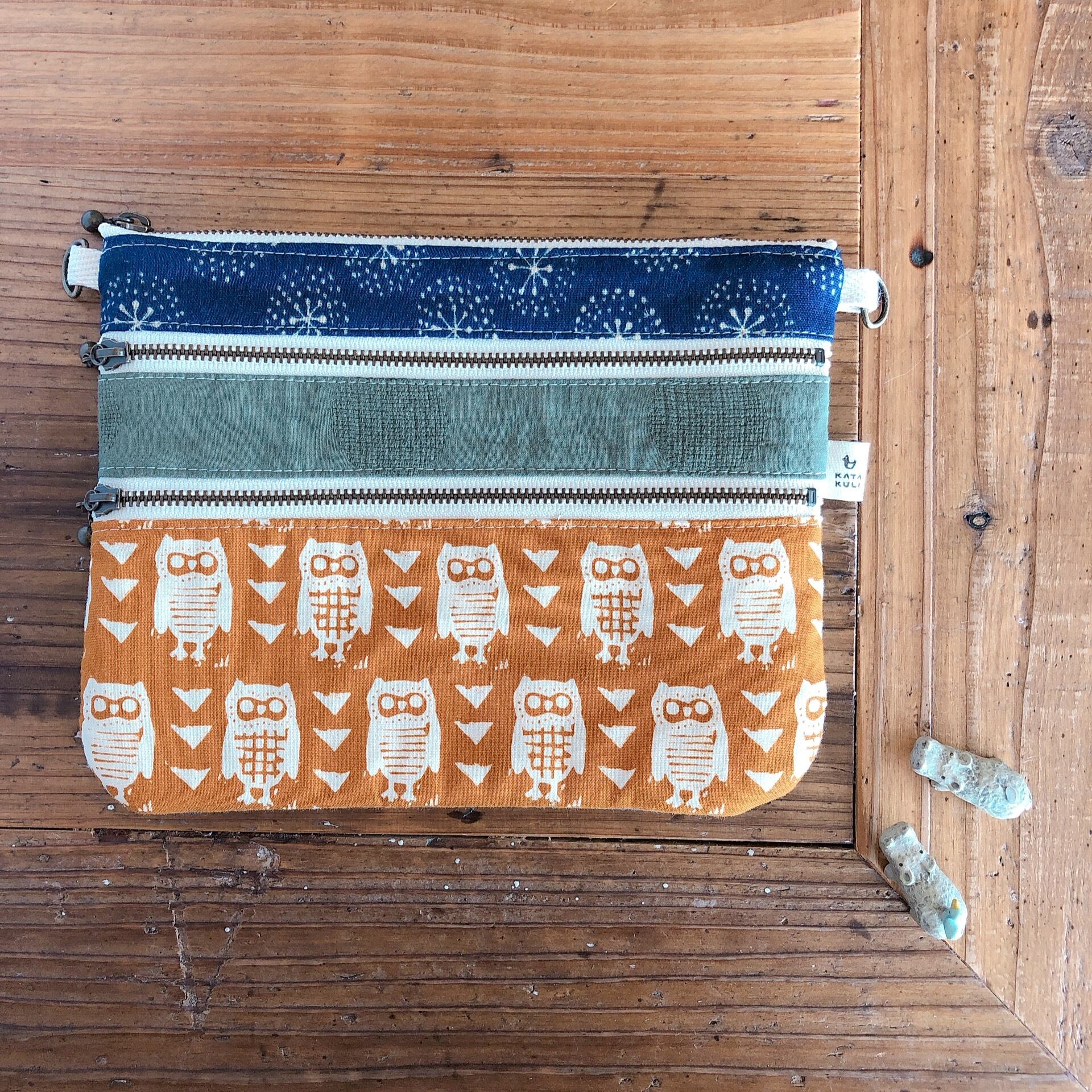 ポシェットにもなります*3ファスナーポーチ(ふくろう・れんが)