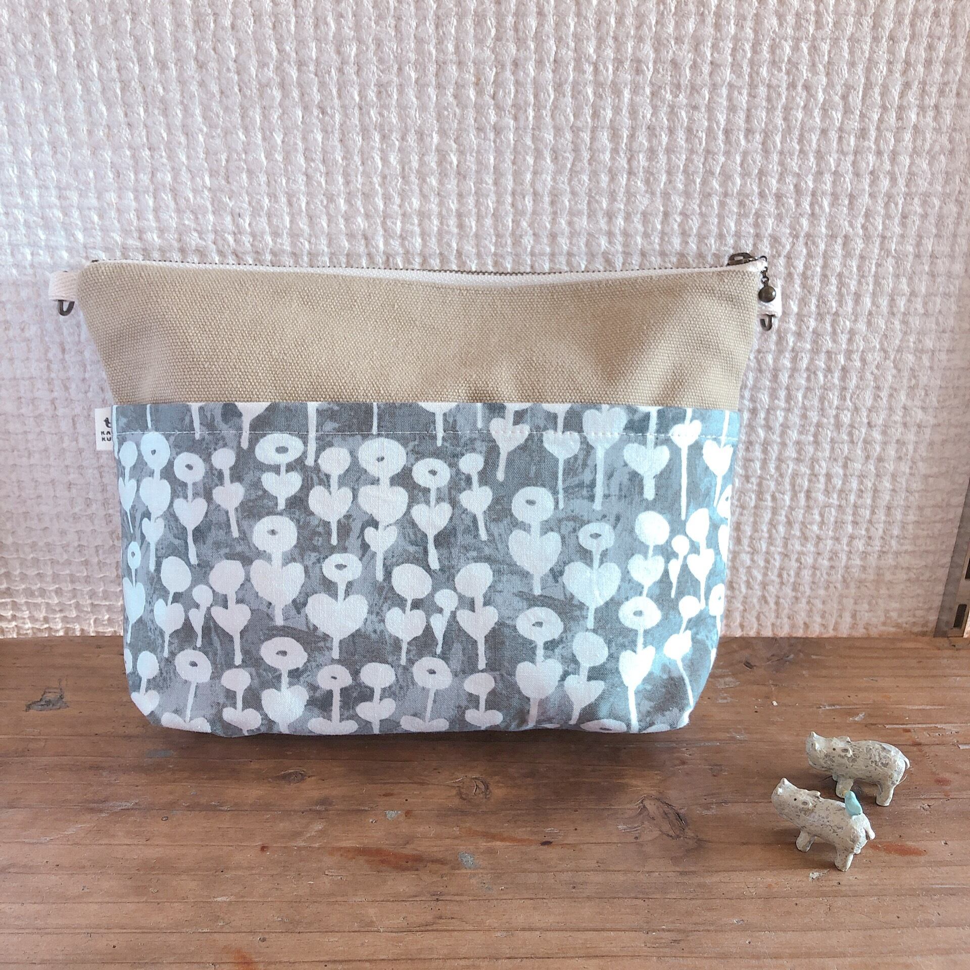 大きめな3ファスナーポーチ*ポシェットにも(フラワー)