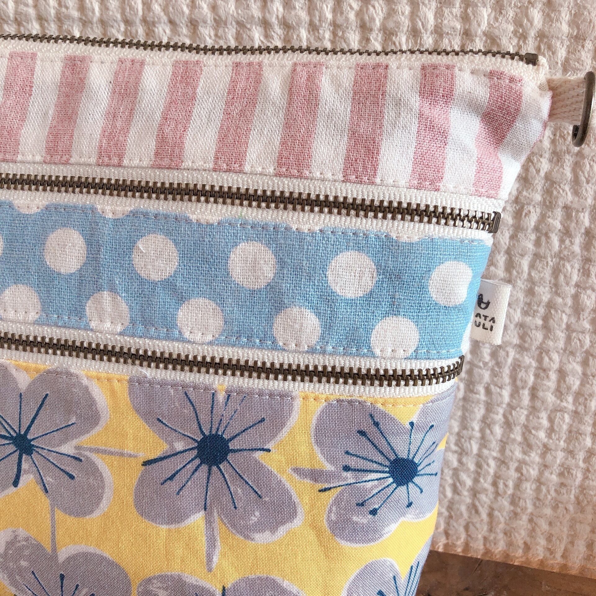 相性の良い生地を組み合わせてポシェットにもなるポーチを作りました。