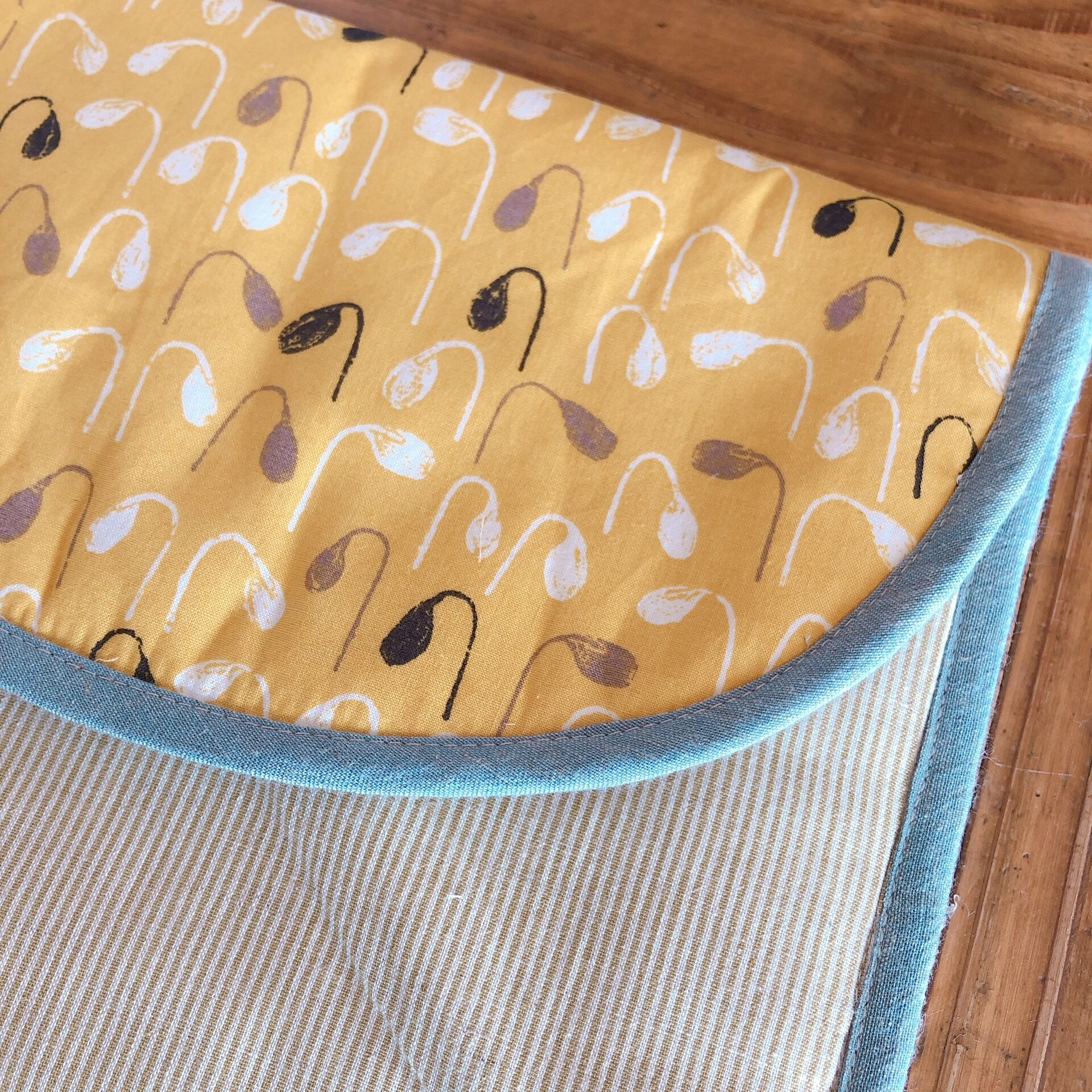 北欧風の布を使ってふんわりワタ入りのマルチケースを作りました。