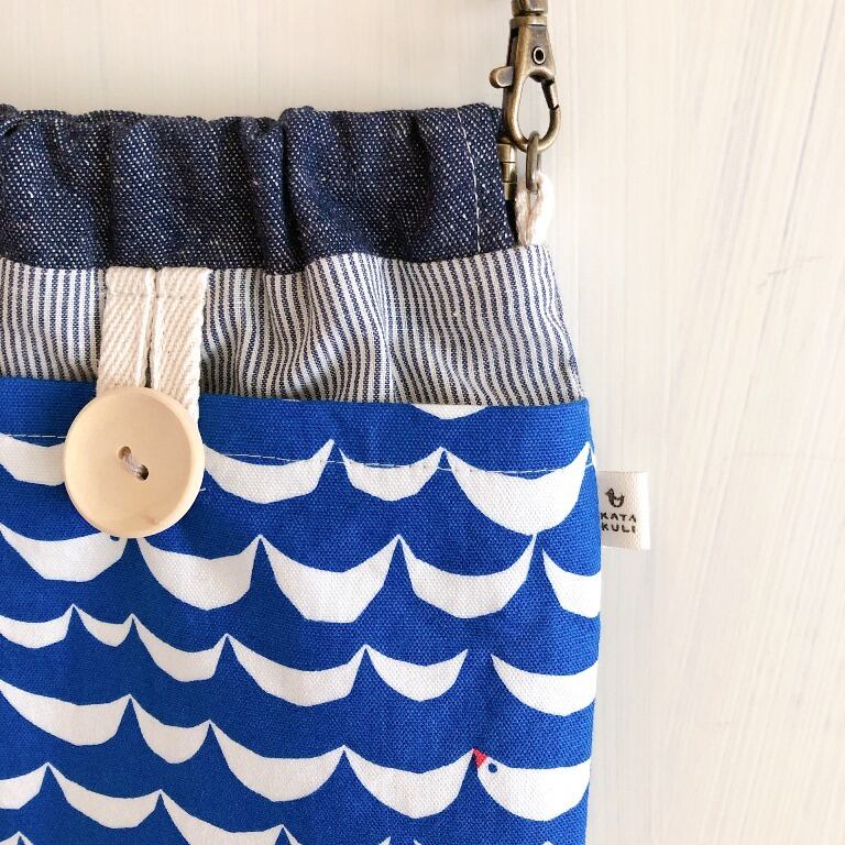本革ストラップのまあるいサコッシュ(波の中にことり)