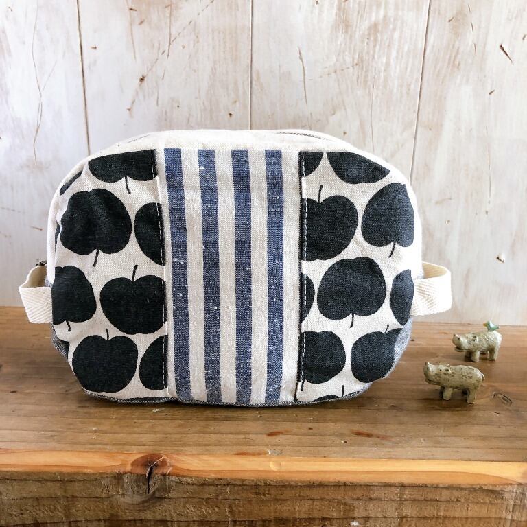 ポーチ☆おむつ、お化粧入れにも♪内ポケット付き(リンゴ・ブラック)