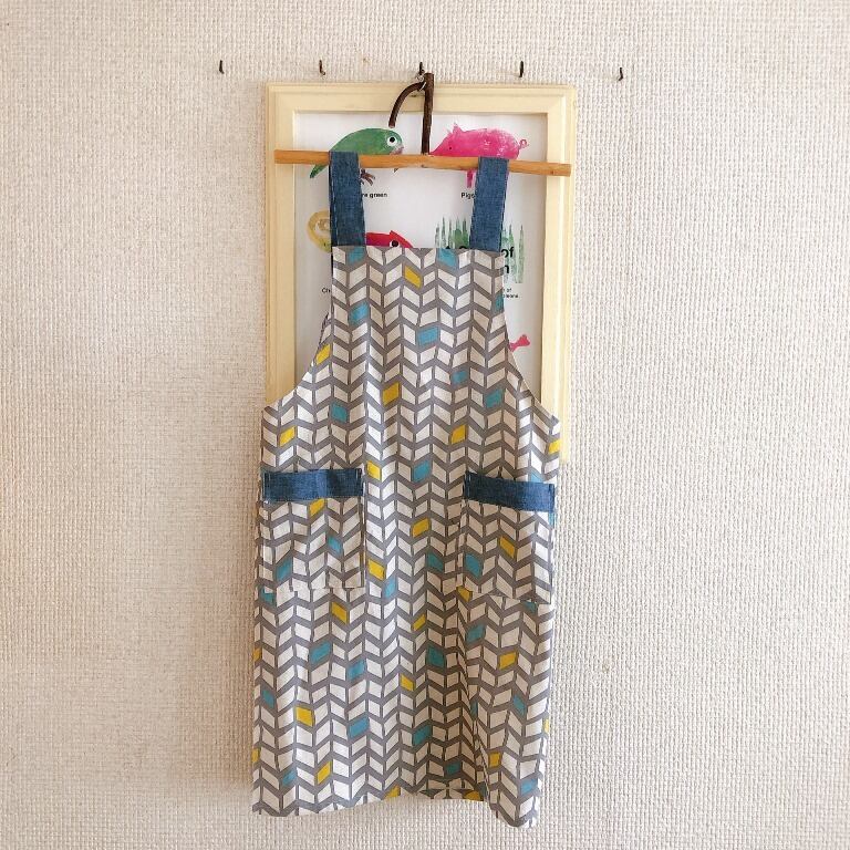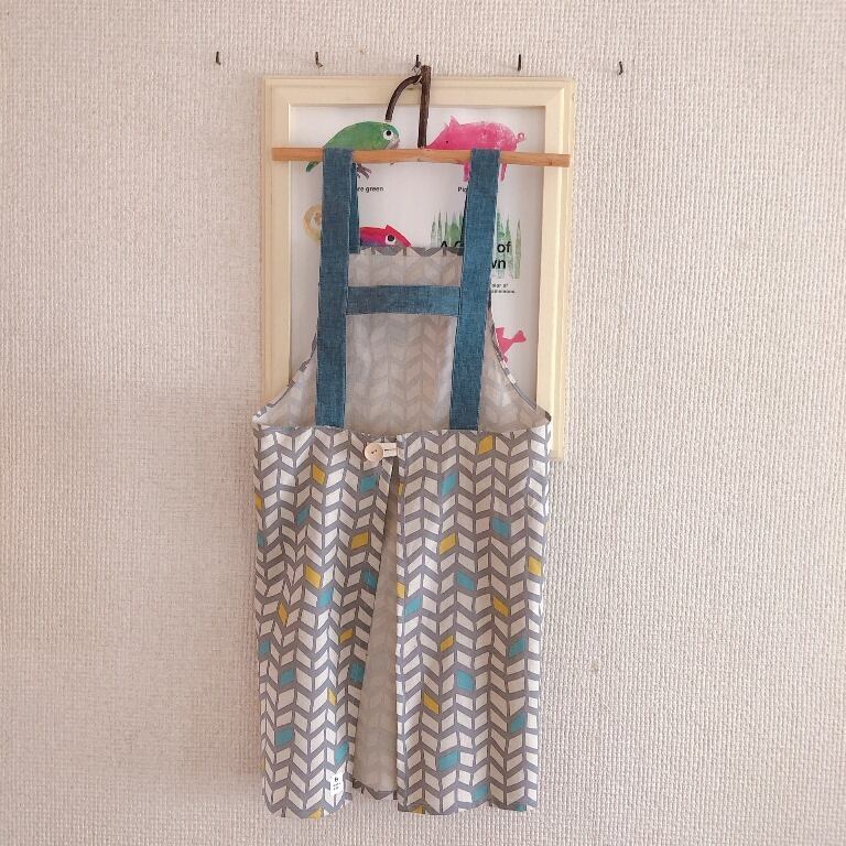 肩ひも後ろはHの形。おとなエプロン(グレー)
