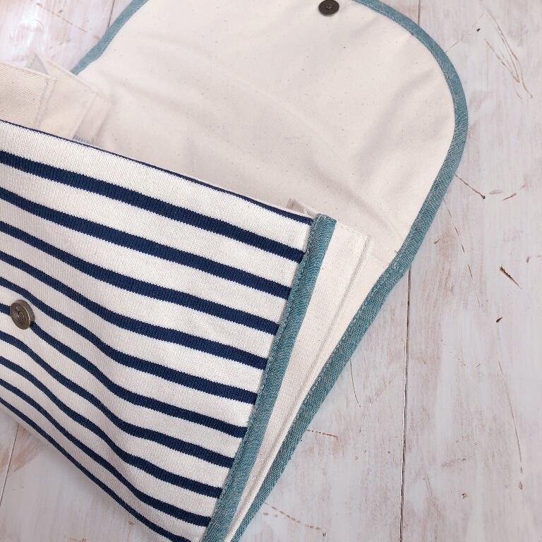 裏側には、相性の良い生地で大き目なポケットがついています。