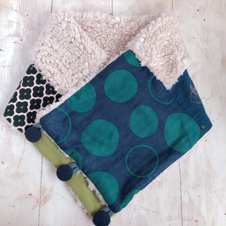くるみボタンのあったかmixスヌード(ネイビードット×グリーン)