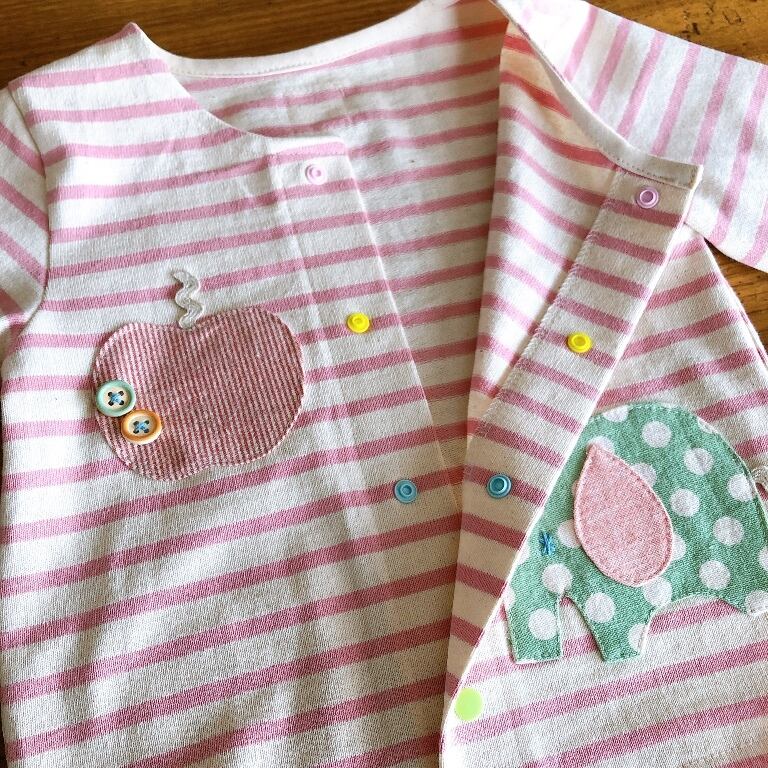 スナップボタンは全色違う色を使っていますので、お着換えの練習にも♪