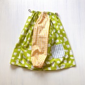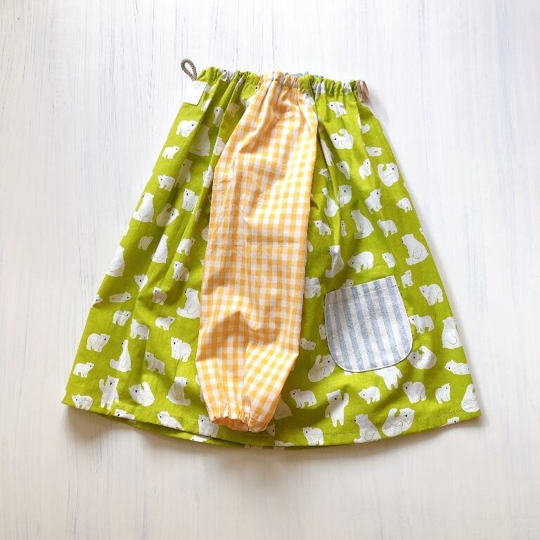 ふんわりやさしい色合いのこどもらしい生地でスモックを作りました。