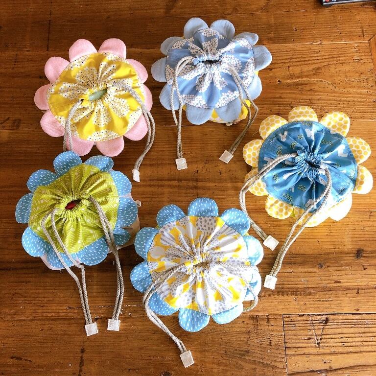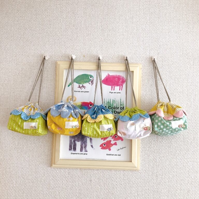 おうちの巾着で一緒に幼稚園や保育園に連れて行ってくださいね