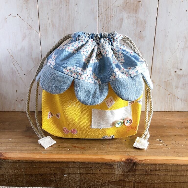 おうちの巾着で一緒に幼稚園や保育園に連れて行ってくださいね