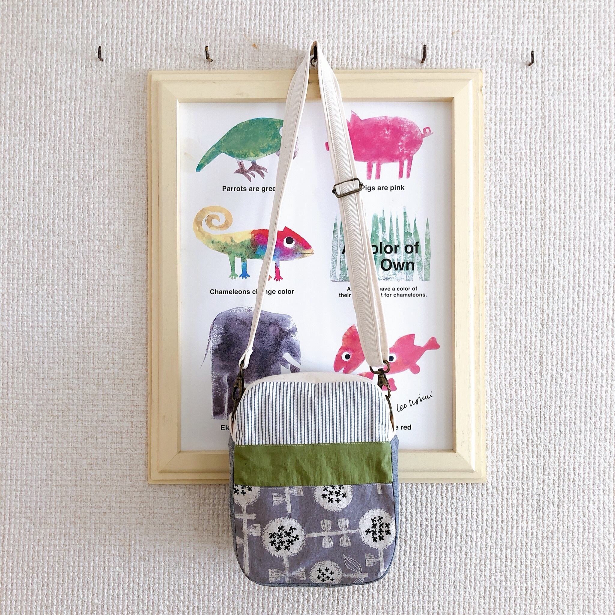 縦長な大きめポーチ*ポシェットにもなります(フラワー×どうぶつたち)
